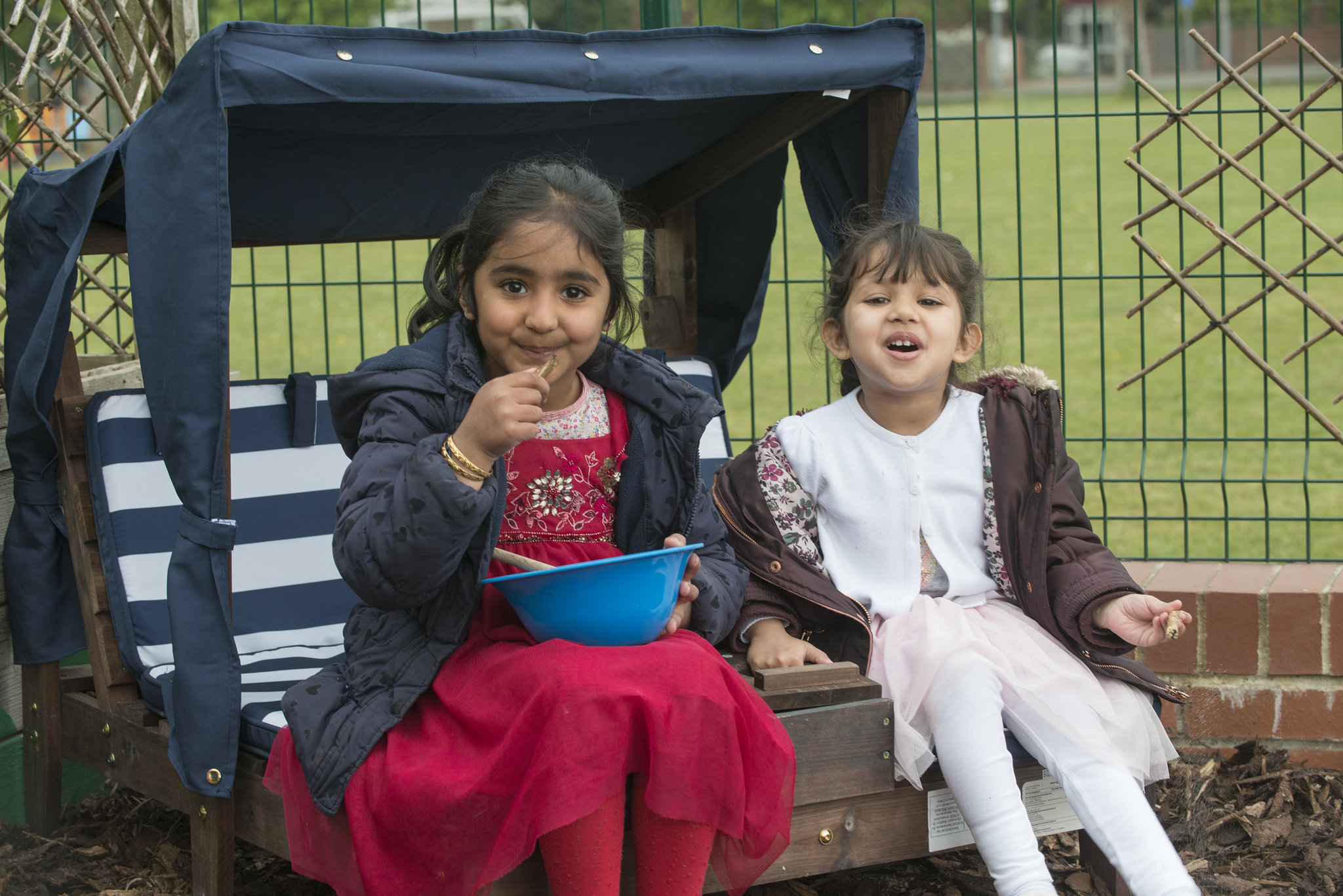 We have a lovely enclosed garden, with an extensive covered area, so children can do outdoor sports and play several times a day, every day , Rain or Shine.